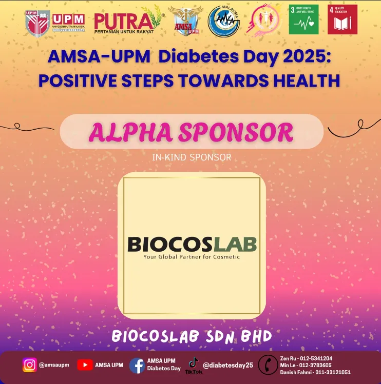 🎉 SPONSOR APPRECIATION POST 🎉 A heartfelt thank you to BIOCOSLAB SDN BHD for your generous support and contribution to Diabetes Day 2025! 🙌✨Your sponsorship played a vital role in making this event a success.💖 🤝 “Knowledge, Action, Friendship” With gratitude,Asian Medical Students’ Association Universiti Putra Malaysia (AMSA-UPM) 24/25#AMSAUPMDDAY2025#thankyousponsor